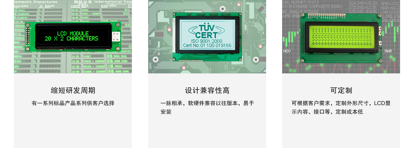 包含PCBA(LCD驅(qū)動芯片放在PCB上),一般包含PCBA、LCD、鐵框加膠條或斑馬紙或裝PIN連接、背光等,可實現(xiàn)段碼類、字符類、點陣圖形類顯示。